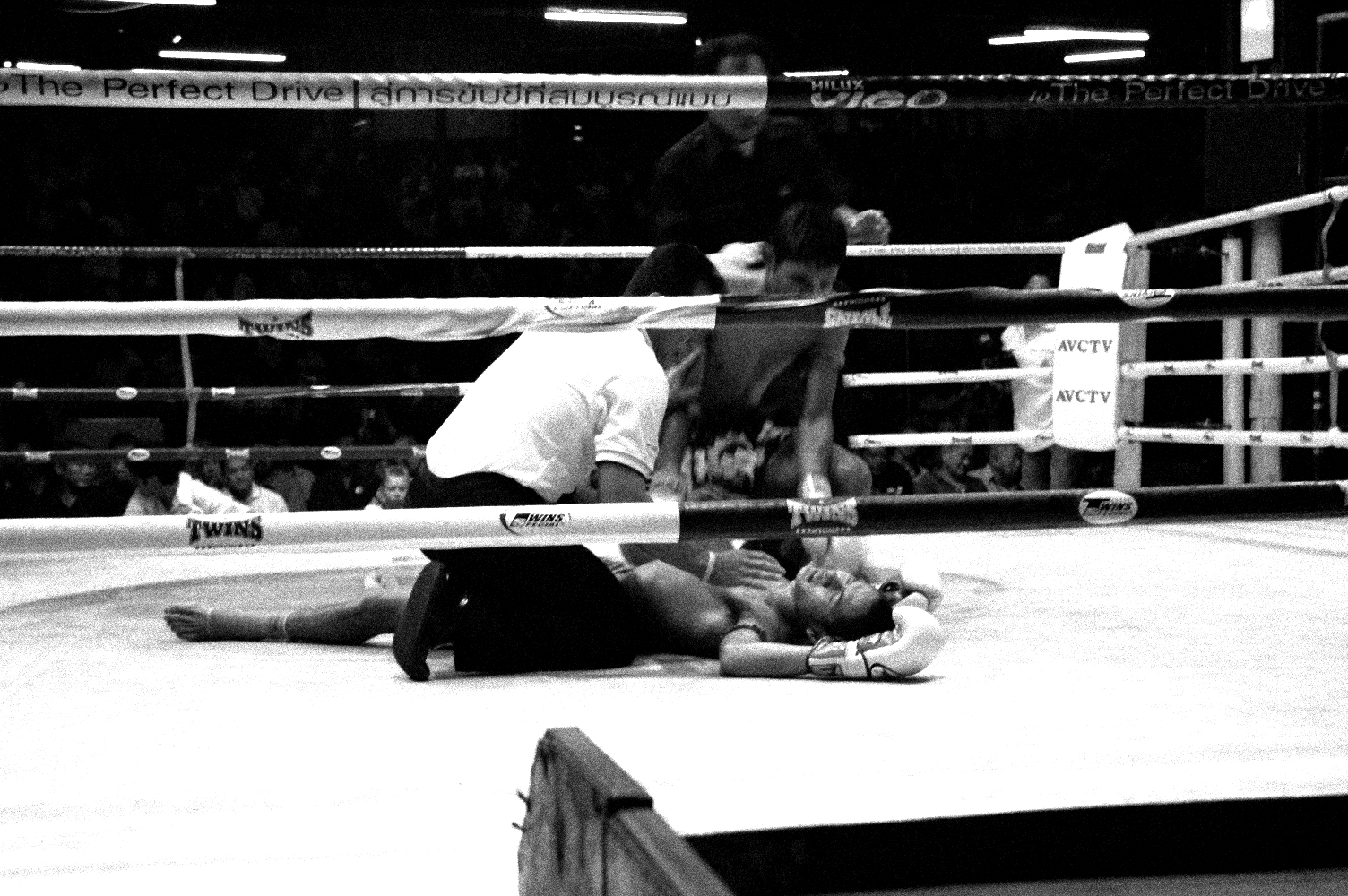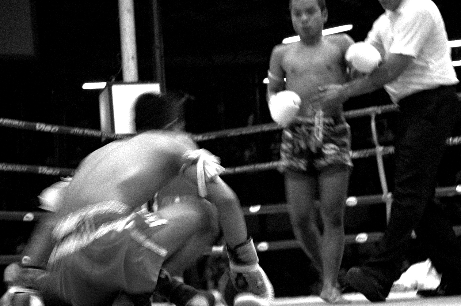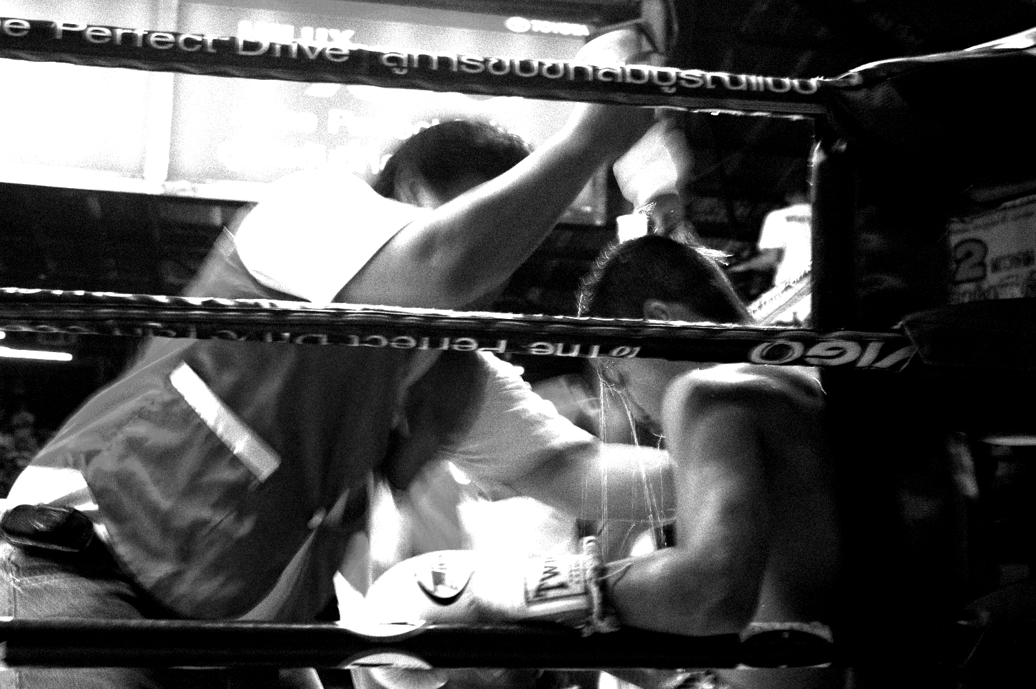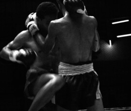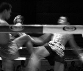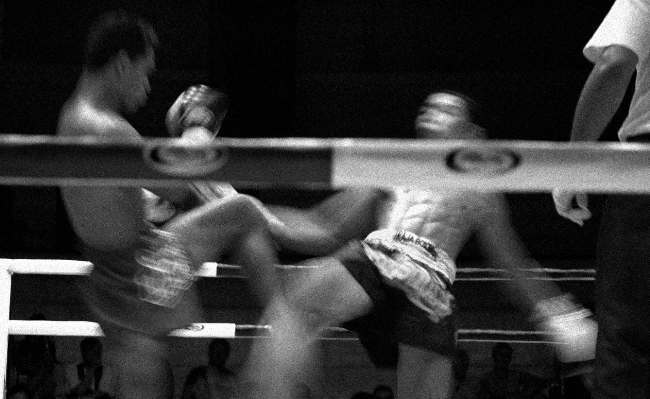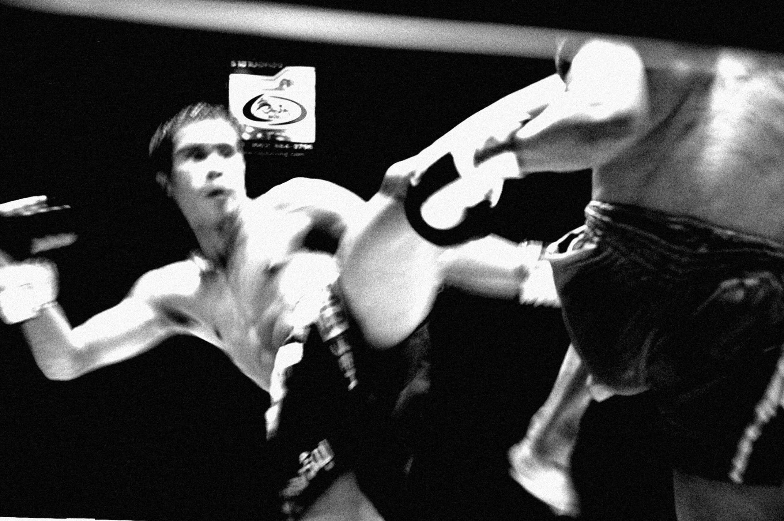 Muay Thai appears here not simply as sport, but as ritualized confrontation: a disciplined economy of violence, technique, and endurance. Bodies are never only bodies; they are instruments of training, strategy, risk, and survival. The work is drawn to the threshold where control and vulnerability meet, where physical precision coexists with exposure, and where the force of the bout extends beyond the ring into the social atmosphere that surrounds it.